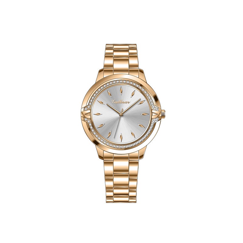ساعة نسائية بمكينة يابانية ومقاومة للماء بسير من اللون النحاسي مقدمة من شركة جولنار مع ضمان لمدة سنتين على اللون والمكينة
